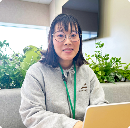 - 今までサポートとしての役割が多く主体的な役割につく経験が少なかったので、ACSiONでは自分の担当顧客を持ち、どんどん会社の利益につなげていきたいです。